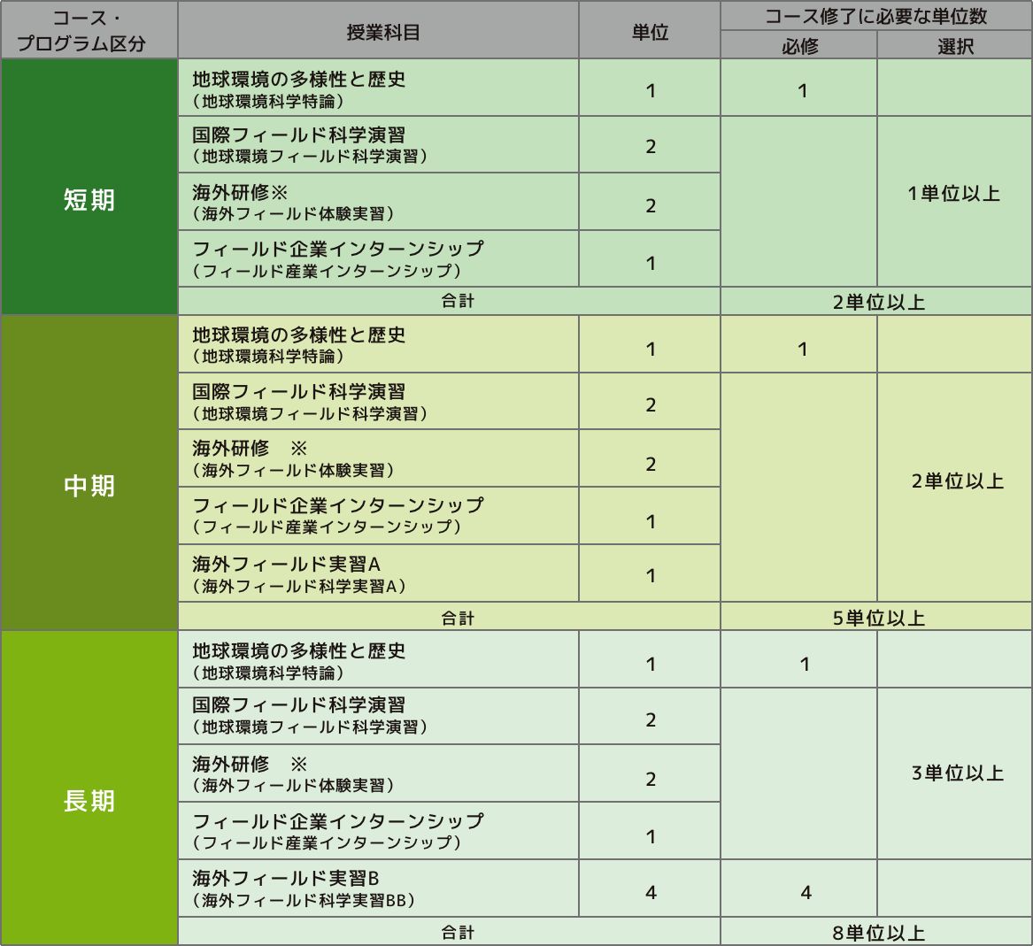 プログラムの名称は以下の通りです。・学部生「地球環境フィールドプランナー養成コース」