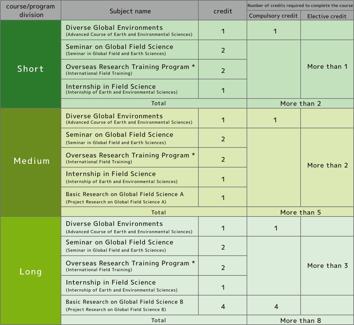 Undergraduate and graduate students must take common courses as part of our educational program. The short-term program is awarded 2 credits, while medium- and long-term programs are awarded 5 credits and 8 credits, respectively. Upon successful completion of the course, students will receive a certificate as proof of their achievement. Additionally, students who complete medium- and long-term programs will be awarded an “open badge,” a digital certificate of learning history certified by the international standardization organization, IMS Global Learning Consortium. Our program is named as follows: